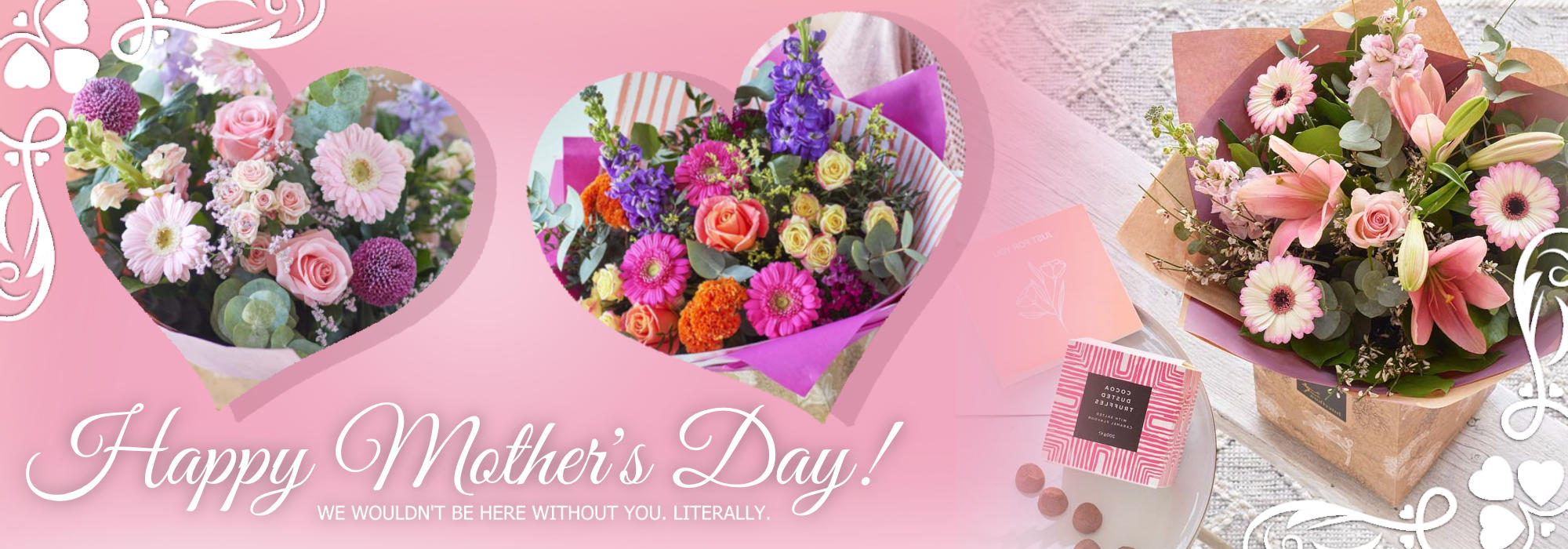 If you would like to order flowers with us today from our website, you will be offered an opportunity to add on balloons, chocolates, wines, champagne and hampers to your order to enhance and compliment your your gift.